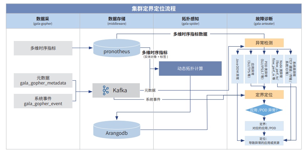 » 进程级异常追踪:通过系统内存、CPU 指标观测技术,实现对特定进程所属 POD 实时观测分析,系统出现异常 文件时,能够对该进程对应 POD 实时异常检测与根因定位,明确进程对应的容器和应用,实现对异常进程的实 时监控,确保系统异常文件及时发现帮助完成快速定位定界;